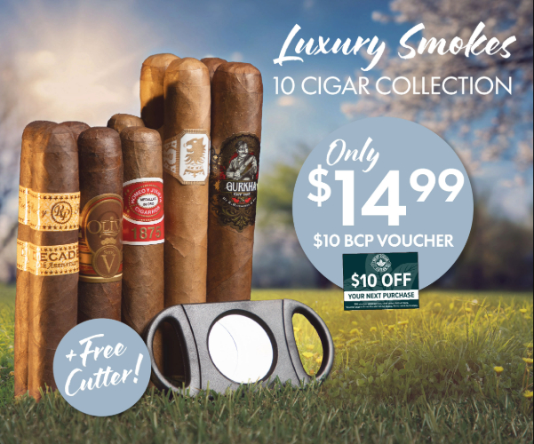 Indulge in smoky style with our Luxury Smokes 10-Cigar Collection — carefully selected by our in-house tobacconists to take your relaxation to the next level. Sample 10 iconic handmades delivered straight to your door from Drew Estate, Oliva, Rocky Patel, and Romeo y Julieta for only $19.99 while supplies last!