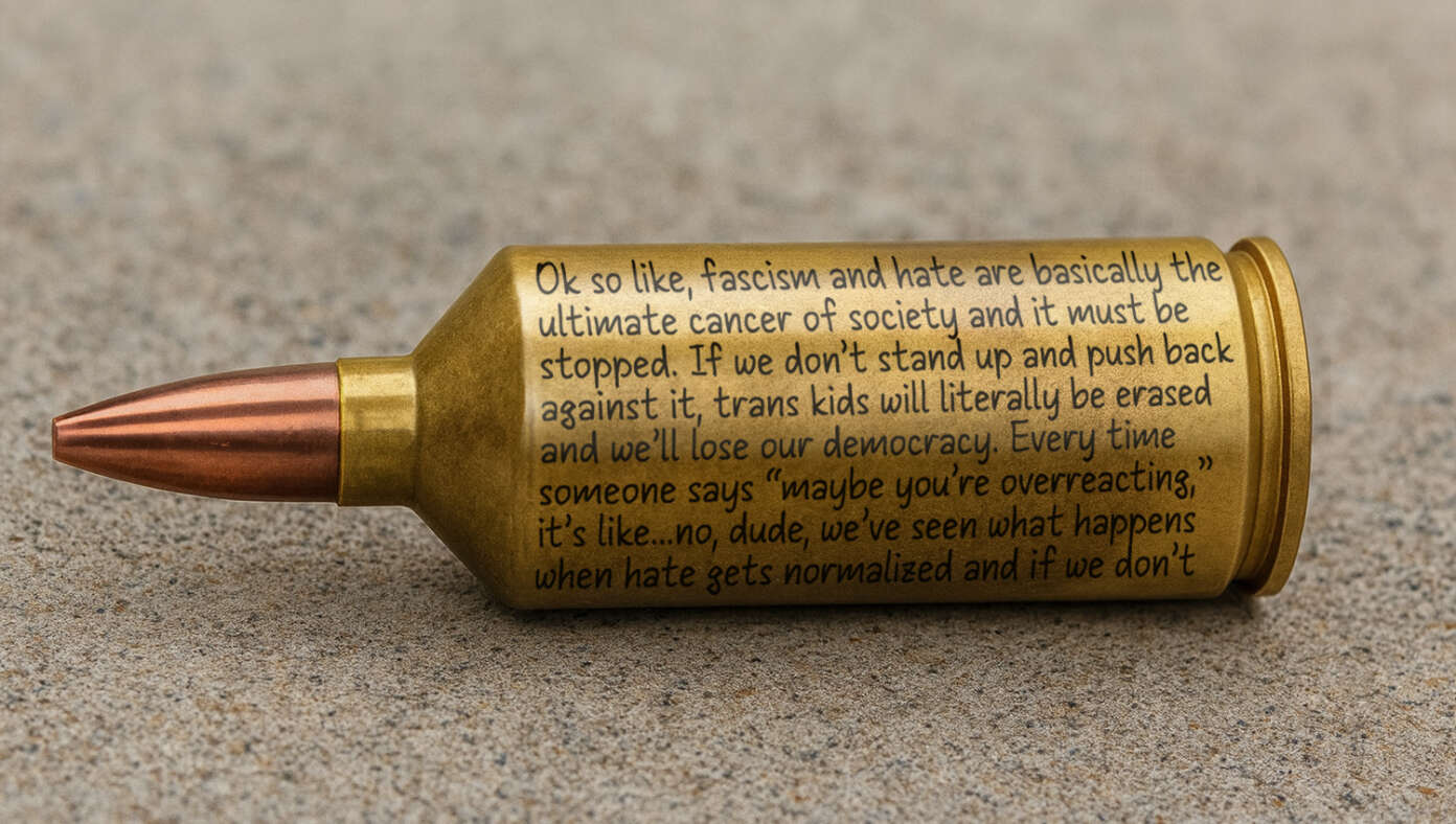 “Finally, a projectile with more writing room,” said Progressive Ammunition marketing representative Jim Prater. “Left-wing terrorists have been forced to write short messages on their bullet casings for too long, and it’s time to give them the room they need to express themselves before they commit some heinous act of murder. We hope to become the preferred ammunition company for Democrats, anarchists, and other deranged killers everywhere.”
