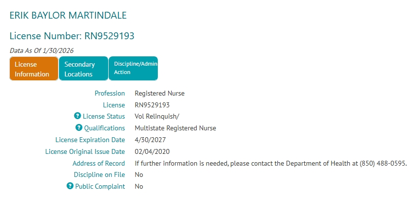 Yesterday, Florida Attorney General James Uthmeier announced that Martindale’s days as a nurse in Florida are over, at least for now.
