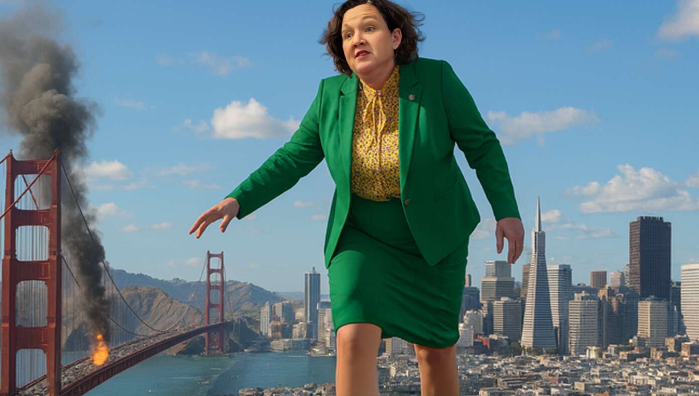 SAN FRANCISCO – The National Guard has been called to California’s Golden City to neutralize a 600-foot-tall Katie Porter, who is apparently rampaging her way through San Francisco.
