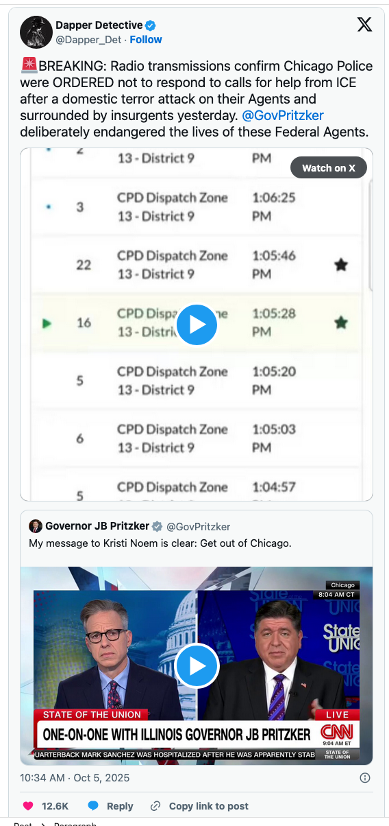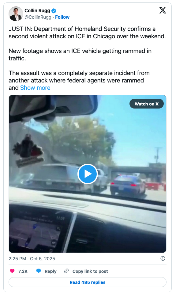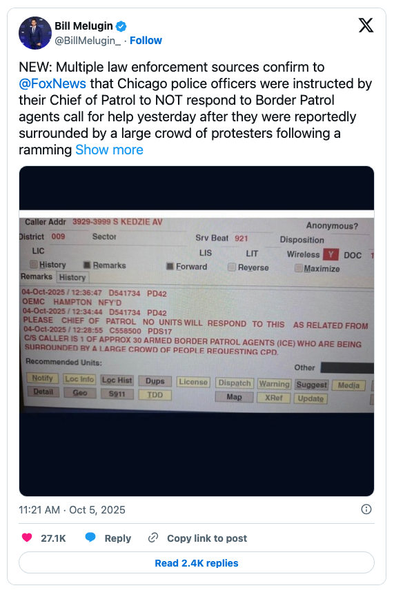 The move comes three days after Chicago cops were ordered not to protect Border Patrol (CBP) agents when domestic terrorists attempted to kill them by surrounding and ramming their vehicles. Audio of the order to leave the agents at the mercy of the terrorists has gone viral on X. Agents were forced to fire on a leftist who carried a semiautomatic firearm.