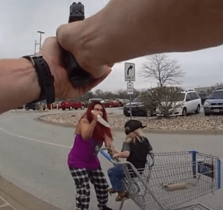 When officers arrived, they saw a woman, identified as 31-year-old Noemi Guzman, outside the store holding a knife to a 3-year-old boy, who was in a shopping cart, officials said.