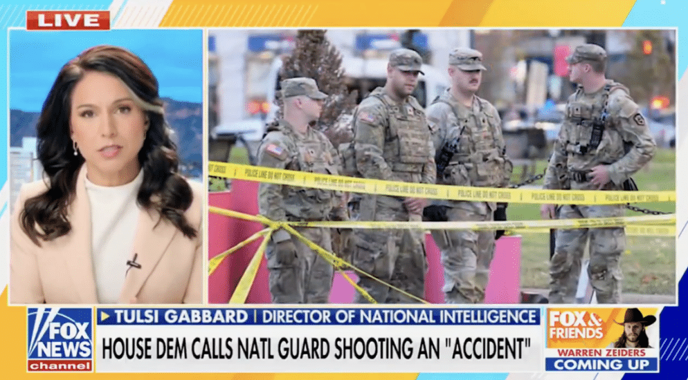 During a Friday morning appearance on Fox & Friends, DNI Tulsi Gabbard addressed Rep. Bennie Thompson’s claim that the shooting of two National Guard members in Washington D.C. was an “unfortunate accident.”