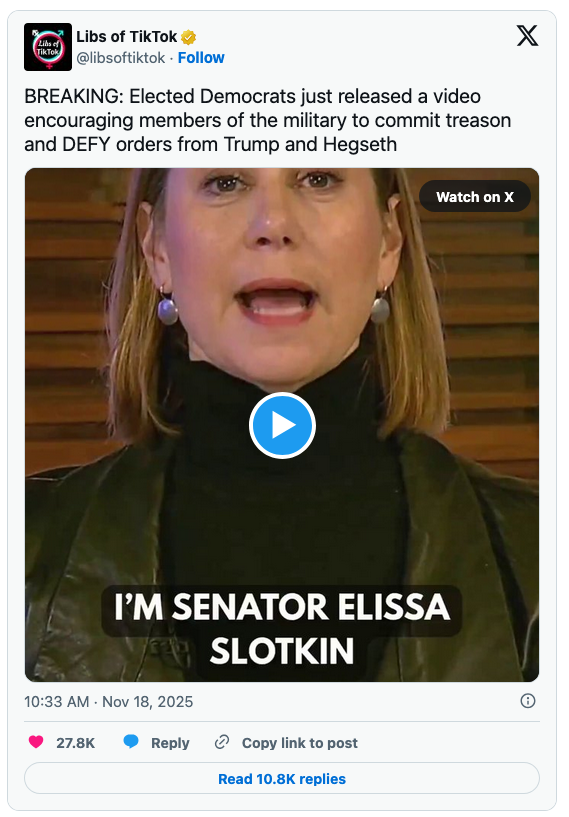 In their 90-second video, the Democrats claim (without naming him) that President Donald Trump threatens the Constitution and that military personnel must disobey illegal orders.