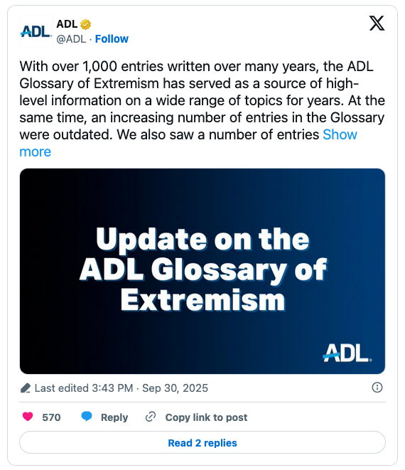 In late September, X owner and Tesla tycoon Elon Musk repeatedly called the ADL a “hate group,” notably after its designation of TPUSA as “extremist” in 2019 resurfaced online.