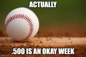 We started the week going 2-1 against Pete’s Brewers and ended it losing two out of three to the Royals, who have a tough rotation. So we’re still in second place in our division at 63-67, seven games behind the Twins and five ahead of the Brewers. I can’t remember offhand how Pete has the playoff brackets set up, but since there are two teams in the other division with better records, there’s a chance I’ll miss the playoffs – but I’ll have plenty of keepers for next year and some early draft picks to mend the holes in our pitching.