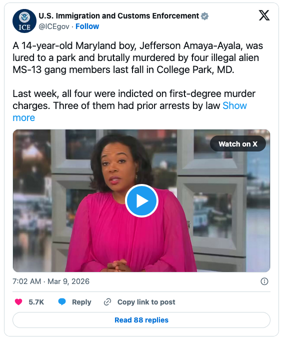 This time, prosecutors in Prince George’s County, Maryland, have charged four MS-13 gang members — two of them released by the Biden administration — in the murder of a 14-year-old boy.