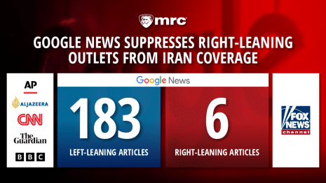 A report from the Media Research Center claims that Google’s Google News heavily favored left-leaning outlets in its coverage of the escalating U.S.-Israel conflict with Iran.