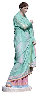 The ancient Greeks and Romans made sculptures, and they painted them. Some of that statuary still exists, and even more was standing or lying about in Rome in Michelangelo’s time, at which point (as today) the paint (polychrome) had long ago worn off, and an erroneous theory arose in Renaissance Italy that classical artists glorified in the purity of plain, white stone. That has mostly remained the standard for figurative sculpture ever since.