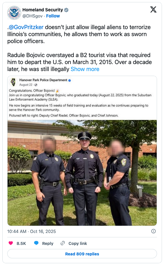 Given the background vetting that incoming cops undergo, one would have to believe that village officials knew Bojovic was an illegal alien, yet hired him anyway.