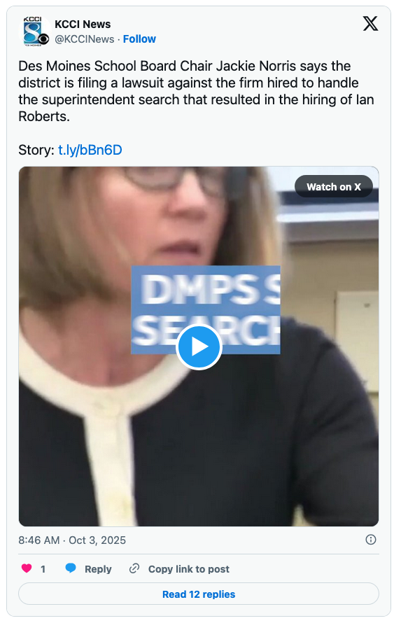 For its part, the Des Moines public school system is suing the company that was supposed to vet Roberts before he was hired.