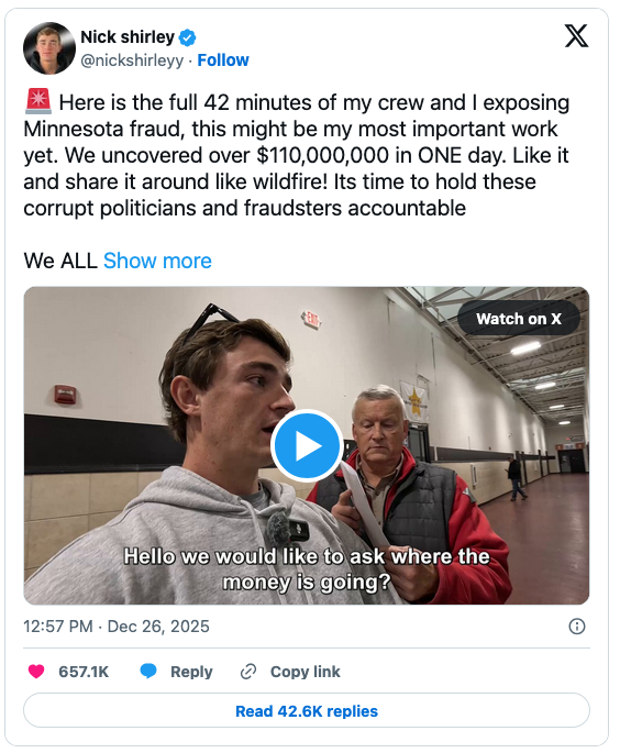 On Monday, the Department of Homeland Security announced on X that Homeland Security Investigations agents were on the ground in Minneapolis looking for fraudsters. They showed up “at daycares, healthcare facilities, and other suspected sites.”