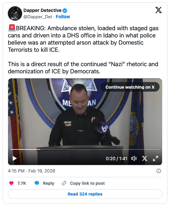 An unnamed suspect attempted to destroy a Department of Homeland Security (DHS) facility in Meridian, Idaho, yesterday.