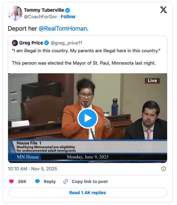 Strangely, Immigration and Customs Enforcement (ICE) did nothing after the confession. That permitted her to win the election over “two-term DFL incumbent Mayor Melvin Carter III, a legacy politician,” the Star Tribune explained: