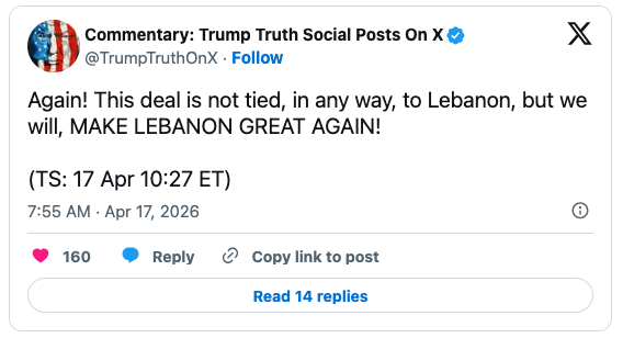 Israel and Lebanon affirm that the two countries are not at war and commit to engaging in good-faith direct negotiations, facilitated by the United States, with the objective of achieving a comprehensive agreement that ensures lasting security, stability, and peace between the two countries.