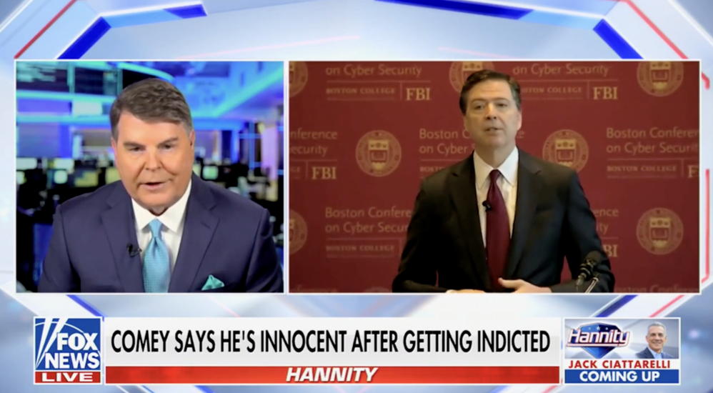 Hours after the DOJ confirmed Comey was indicted on two of three counts, he posted a video on Instagram claiming his “heart” is “broken” for the department. Sean Hannity pressed Jarrett on whether “any possibility of any superseding indictments” remains following Thursday’s announcement.