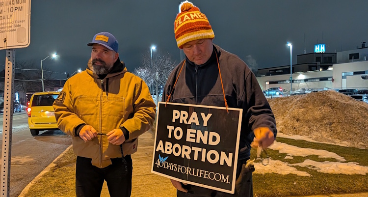 Angela and her 40 Days for Life team on the Canadian side of Niagara Falls pray in front of a hospital.
