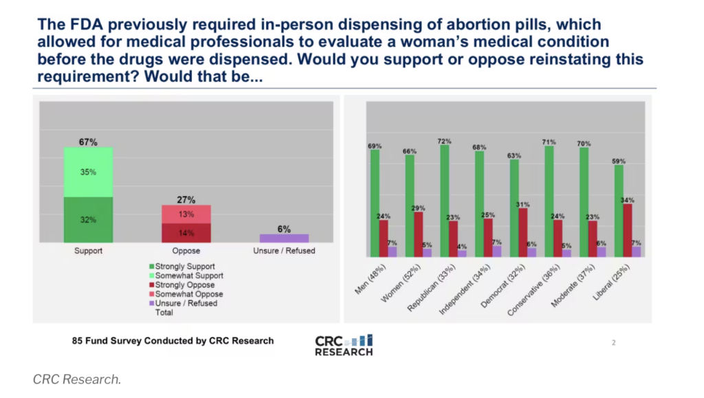 What makes this data so interesting and newsworthy is how it breaks down across political lines. Support for medical oversight was not limited to a single party. In fact, 72% of Republicans, 68% of Independents and 63% of Democrats all supported reinstating in-person doctor visits before accessing abortion pills.