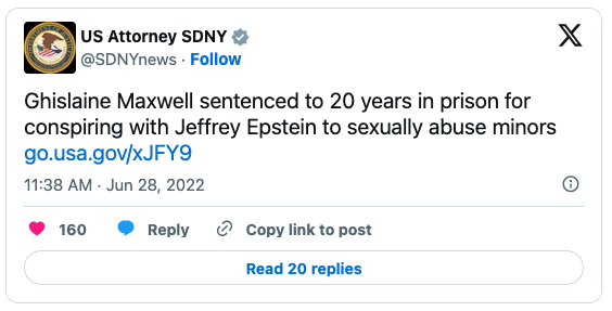 In 2022, Maxwell landed 20 years in federal prison after a jury found her guilty of five sex crimes after a one-month trial.