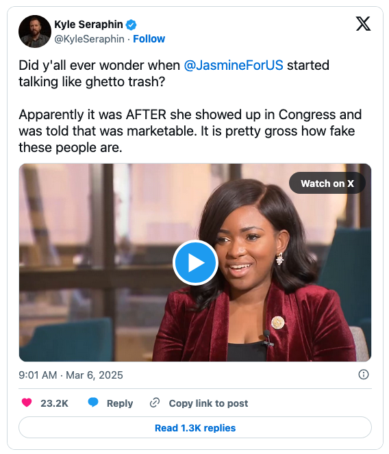 And in March, podcaster Kyle Seraphin posted video of Crockett speaking in a normal accent, not the one she routinely uses now.