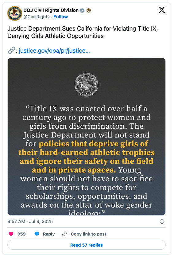 In February, Trump issued an executive order titled “Keeping Men Out of Women’s Sports.” In it he required the secretary of state