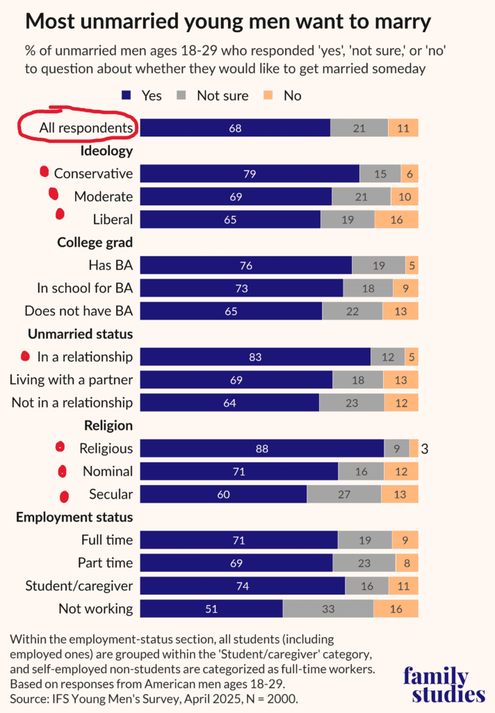 So, are young men even interested in marriage and fatherhood? That is an extremely important question for the family formation prospects in the United States, and the news might be better than most imagine.