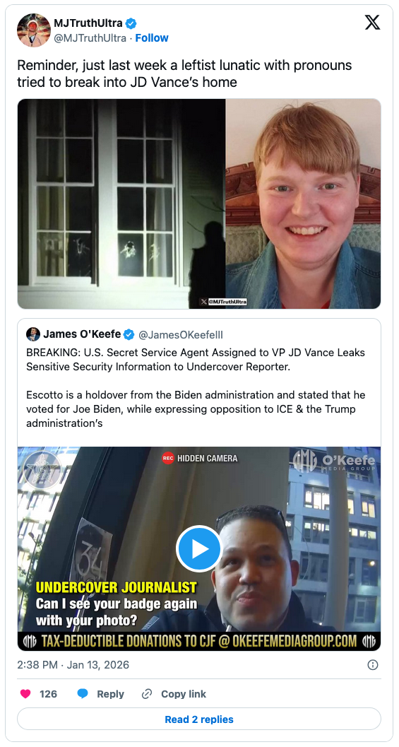 As OMG noted, the security breach is particularly troubling because a “trans woman” tried to break in to Vance’s home in Ohio on January 5.