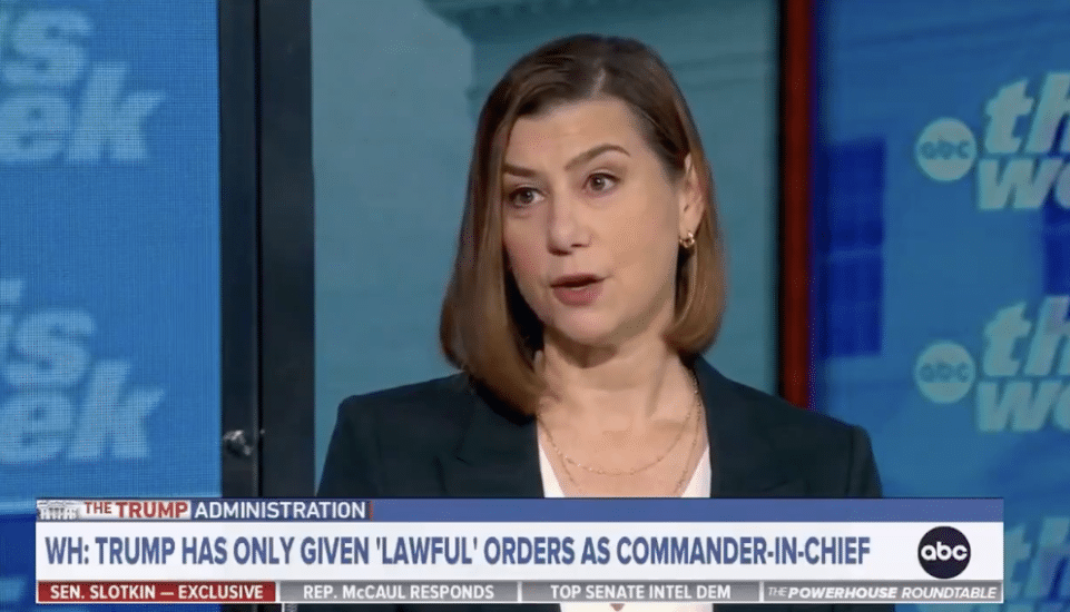 Michigan Senator Elissa Slotkin spoke with ABC’s This Week host Martha Raddatz over the weekend and was forced to admit that, despite her viral video suggesting the contrary, President Trump has not issued any illegal orders to the military.