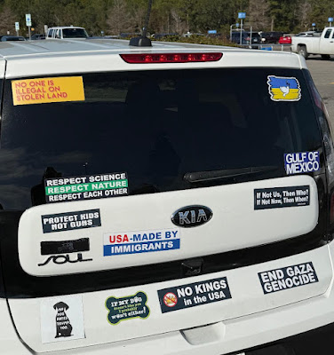 Rarely seen in Brunswick County, NC, here’s a car that belongs to a specimen of Homo wokeus (click to enlarge)