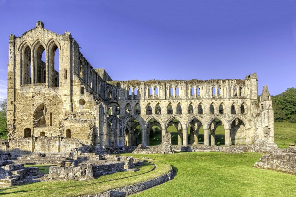 In contrast, look at Rievaulx today. It is a pretty ruin in its valley, and much shrunk since the stones that went to erect it were used in making the secular structures that now litter that particular landscape.