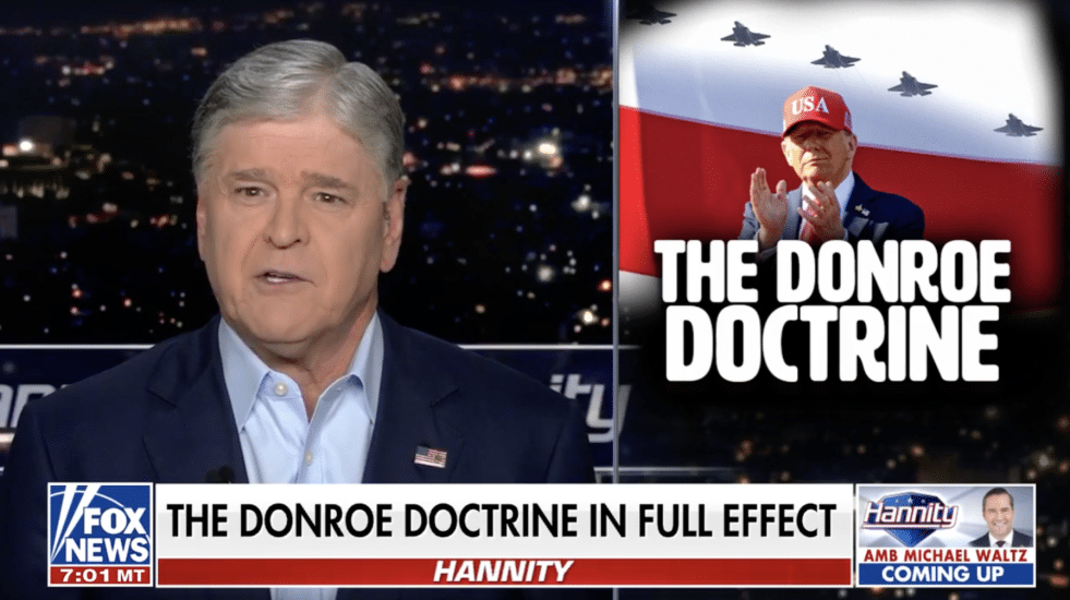 During Tuesday night’s Hannity, Fox News host Sean Hannity took a look at the “Donroe Doctrine” — moves the Trump Administration is taking to restore order and security to the western hemisphere.