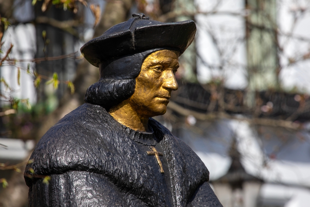 In a quote printed on the front cover of the book, The Wall Street Journal describes Thomas More: A Life as “cinematic.” This is not, perhaps, the compliment the newspaper thinks it is. The term “cinematic” might lead prospective readers to expect a grandiose but grievously oversimplified narrative, the very opposite of what Paul gives us. Probably what the WSJ reviewer meant by “cinematic” is that the book is imaginatively interesting and has lots of images alongside its political and historical reporting. I was relieved to find that Thomas More: A Life is not, in fact, cinematic. Rather, it is literary, an unusual blend of virtuosic and restrained. Paul is not afraid of description, and she is secure enough in her material to weave a tapestry of images to support her historical research. The descriptions throughout the book are not spurious, however; the images she chooses become key to her subtle argument about the nature of great men in general, and St. Thomas More in particular.
