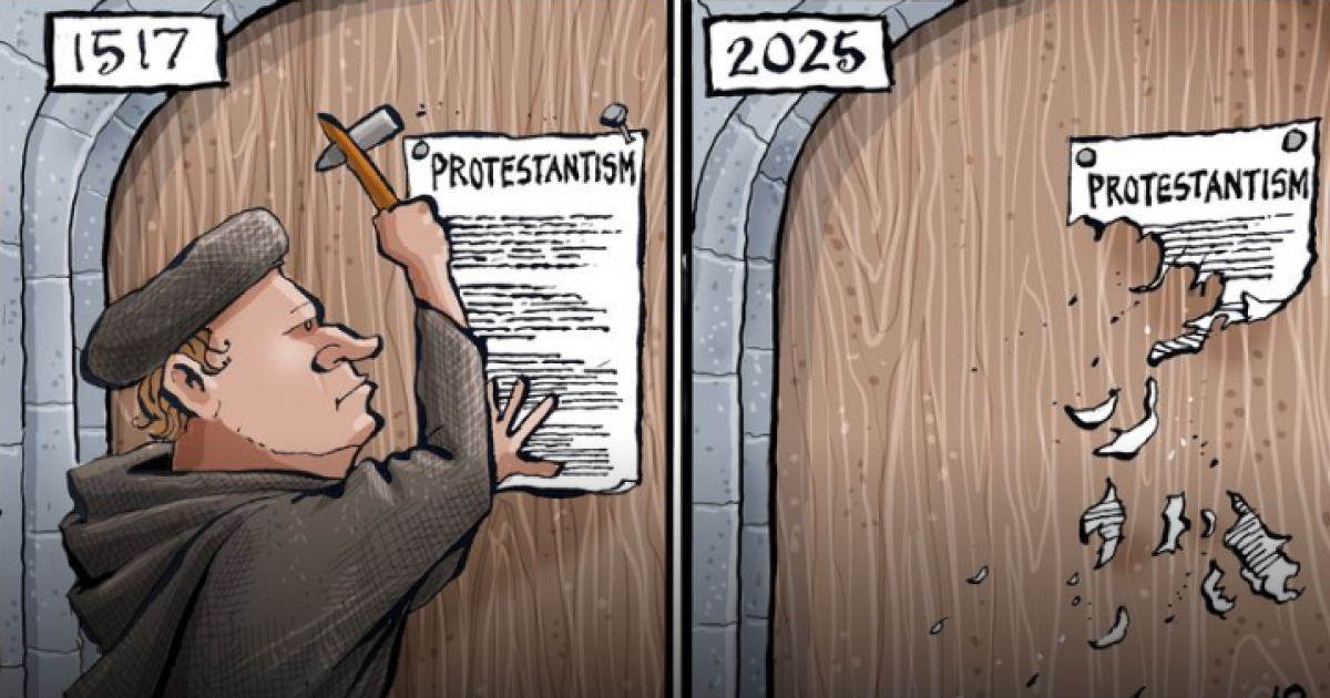 The pivotal doctrine of Protestantism, which arose in the 16th century, was encapsulated in the easy and elegant slogan: justification by faith alone. The other great pillar of original Protestant teaching derived from the same root. “Scripture alone” (the “Word of God”) had to be the only channel for religious truth because if such truth depended on tradition or the Church, it depended on fallen human beings and could not be relied upon. No longer anchored to the rock of Peter, these little vessels that are the Protestant denominations are towed where they will by the states that separated them from Rome. They find themselves today espousing a moral order and an understanding of humanity in flagrant contradiction of the biblicism they once avowed.