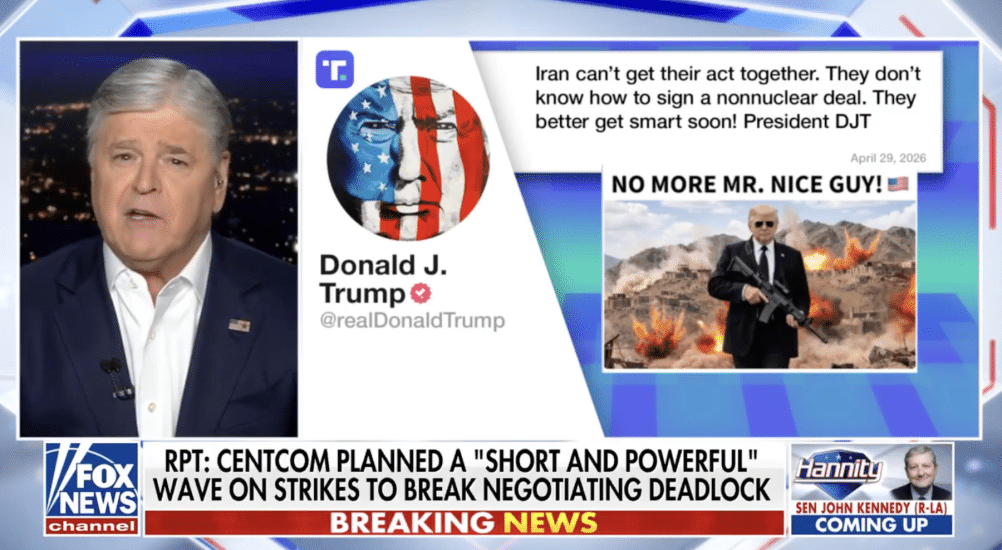 During Wednesday night’s Hannity, Fox News host Sean Hannity covered the latest developments in the Middle East, including the U.S. blockade on the Strait of Hormuz — a move that has Iran on the ropes.