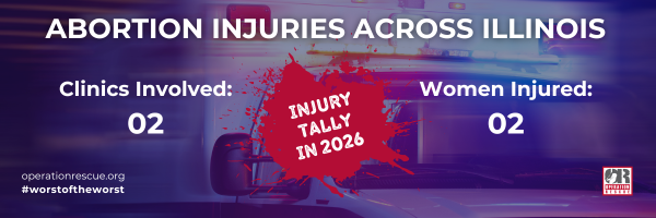“This latest hemorrhage — or butchering — incident comes as no surprise. Operation Rescue has documented dozens of emergency calls from this hopeless clinic masquerading as a women’s health facility over the years. Yet Illinois lawmakers continue to turn a blind eye. Or worse, some actively protect and expand the abortion cartel,” said Troy Newman.