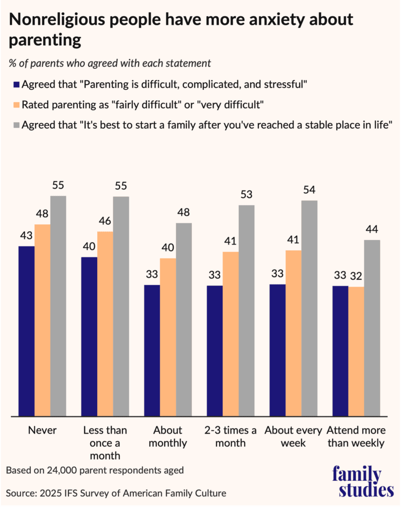 And non-believing people have greater anxiety about parenting and are more inclined to delay the decision to become parents, thus driving depopulation.