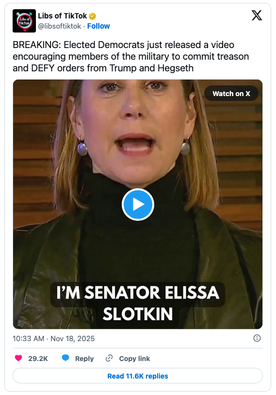 What’s most telling is that the President considers it punishable by death for us to restate the law. Our servicemembers should know that we have their backs as they fulfill their oath to the Constitution and obligation to follow only lawful orders. It is not only the right thing to do, but also our duty.