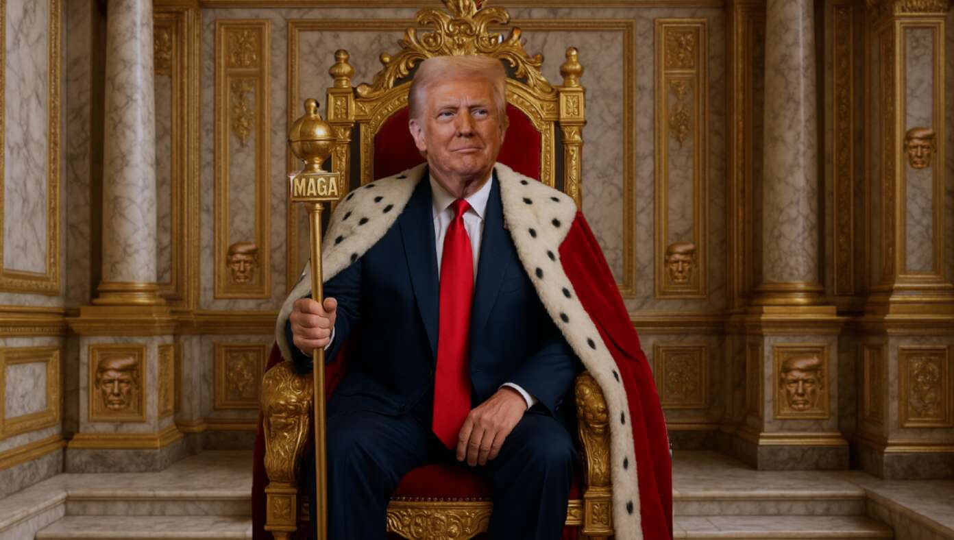 “It is now truly fitting for a king,” Press Secretary Karoline Leavitt reported. “The White House Throne Room has been retrofitted with golden accents, a diamond encrusted gold throne, and a mural depicting President Trump on a horse rampaging through a peaceful protest.”