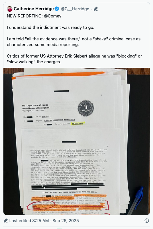 A federal grand jury indicted Comey yesterday after former White House lawyer Lindsey Halligan, recently appointed U.S. attorney in Virginia’s Eastern District, appeared before the grand jury.
