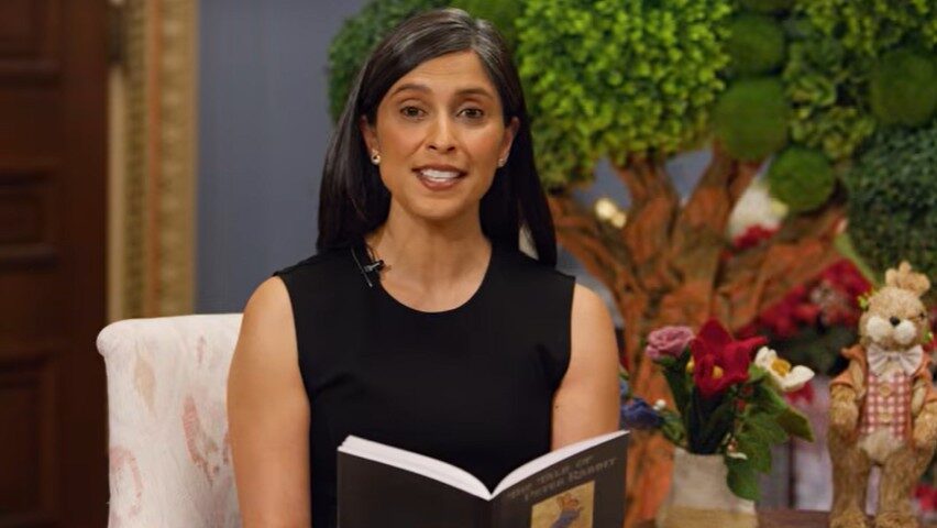 Second lady Usha Vance announced a new podcast for kids, “Storytime with the Second Lady.” She launched the event by reading Beatrix’ Potter’s The Tale of Peter Rabbit.