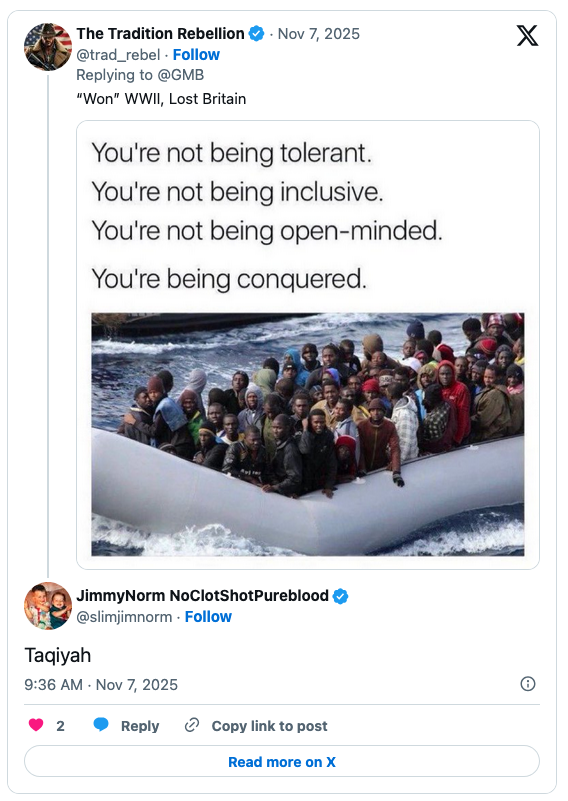 Many such web posts relate to criticism of immigration policy, the sexual devolutionary agenda (“LGBTQ+”), or Islamic influence in Britain.