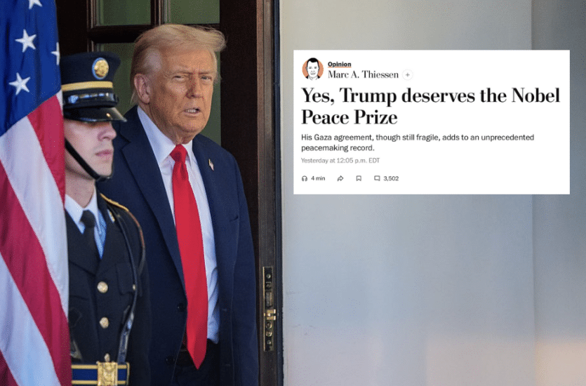 The Washington Post published an op-ed this week conceding that President Donald Trump deserves the Nobel Peace Prize for securing a cease-fire in Gaza.
